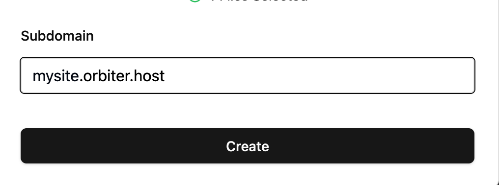 Click Create, and in seconds your site will be online. From the Orbiter dashboard you can click the link to view your site, or you can type it into your web browser. Your site’s domain will be:
